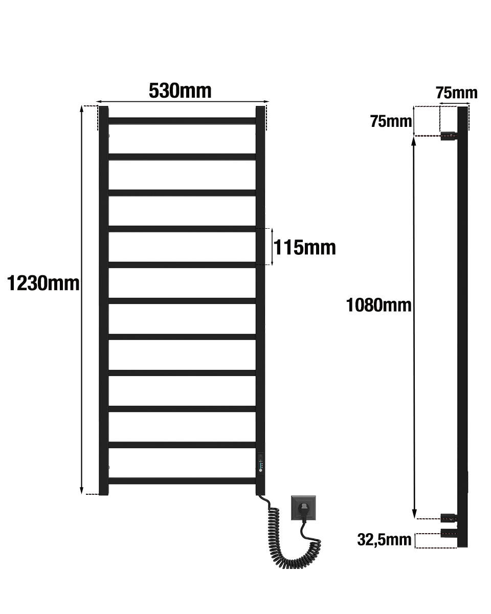 See on täielikult elektriline seade, mis ei tööta vee baasil ega vaja ühendamist keskküttesüsteemiga. Radiaatori saab paigaldada kõikjale, kus on olemas elektripistik – vastavalt teie vajadusele nii vasakule kui ka paremale poole. Sisemine kuiv küttekaabel tagab ohutu ja kiire töö – ilma igasuguste vedeliketa; lihtsalt ühendage see vooluvõrku ja see kuumeneb mõne minutiga. See on eriti mugav, kui on vaja kiiresti kuivatada rätikuid või soojendada neid meeldiva tunde jaoks pärast duši all või vannis käimist. Võimalik on ka peidetud paigaldus – ilma nähtava toitekaablita, mis sobib ideaalselt kaasaegsesse ja minimalistlikku interjööri.