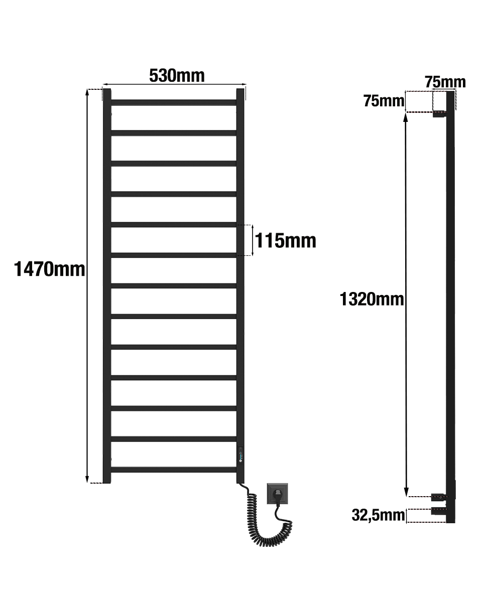 Tai visiškai elektrinis įrenginys, kuris neveikia vandens pagrindu ir nereikalauja prijungimo prie centrinės šildymo sistemos. Radiatorių galima įrengti bet kur, kur yra elektros lizdas – tiek kairėje, tiek dešinėje pusėje, pagal Jūsų poreikį. Viduje esantis sausasis šildymo laidas užtikrina saugų ir greitą veikimą – be jokių skysčių, tiesiog prijunkite prie elektros ir jis įkaista per kelias minutes. Tai ypač patogu, kai reikia greitai išdžiovinti rankšluosčius ar pašildyti juos jaukiam pojūčiui po dušo ar vonios. Galimas ir paslėptas montavimas – be matomo maitinimo laido, idealiai tinkantis moderniam, minimalistiniam interjerui.