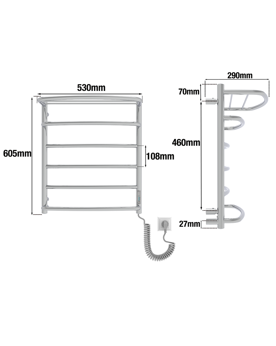 Tai visiškai elektrinis įrenginys, kuris neveikia vandens pagrindu ir nereikalauja prijungimo prie centrinės šildymo sistemos. Radiatorių galima įrengti bet kur, kur yra elektros lizdas – tiek kairėje, tiek dešinėje pusėje, pagal Jūsų poreikį. Viduje esantis sausasis šildymo laidas užtikrina saugų ir greitą veikimą – be jokių skysčių, tiesiog prijunkite prie elektros ir jis įkaista per kelias minutes. Tai ypač patogu, kai reikia greitai išdžiovinti rankšluosčius ar pašildyti juos jaukiam pojūčiui po dušo ar vonios.