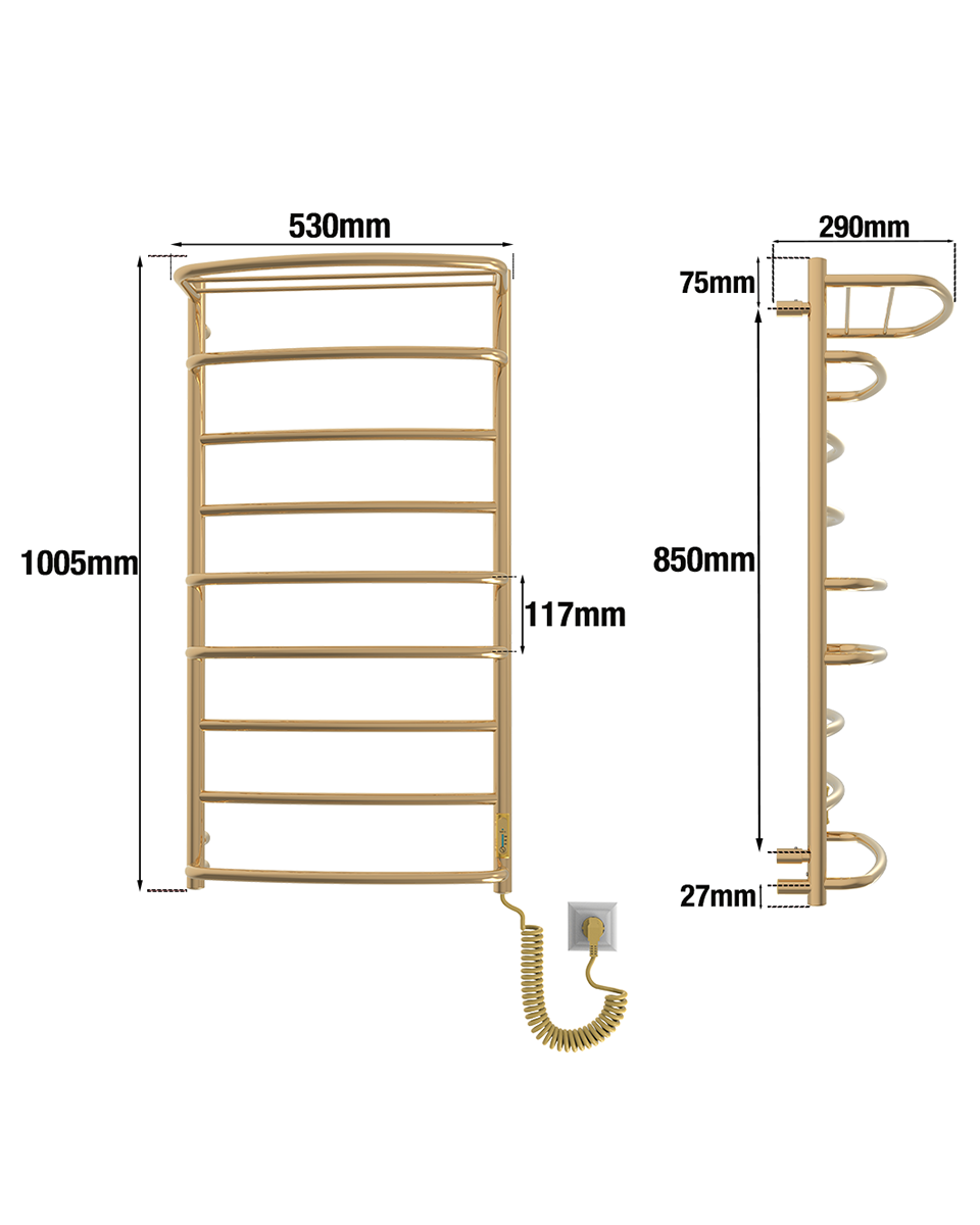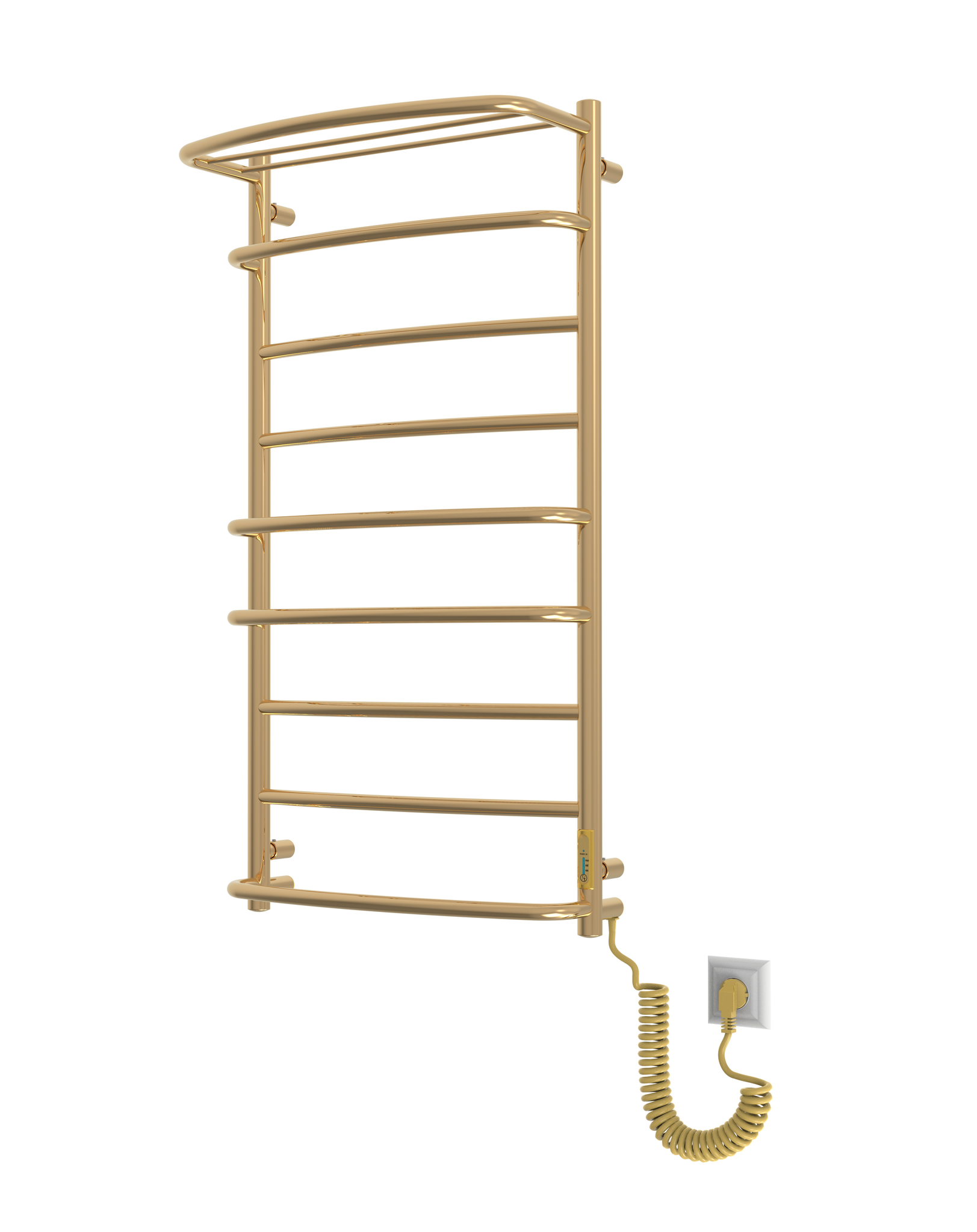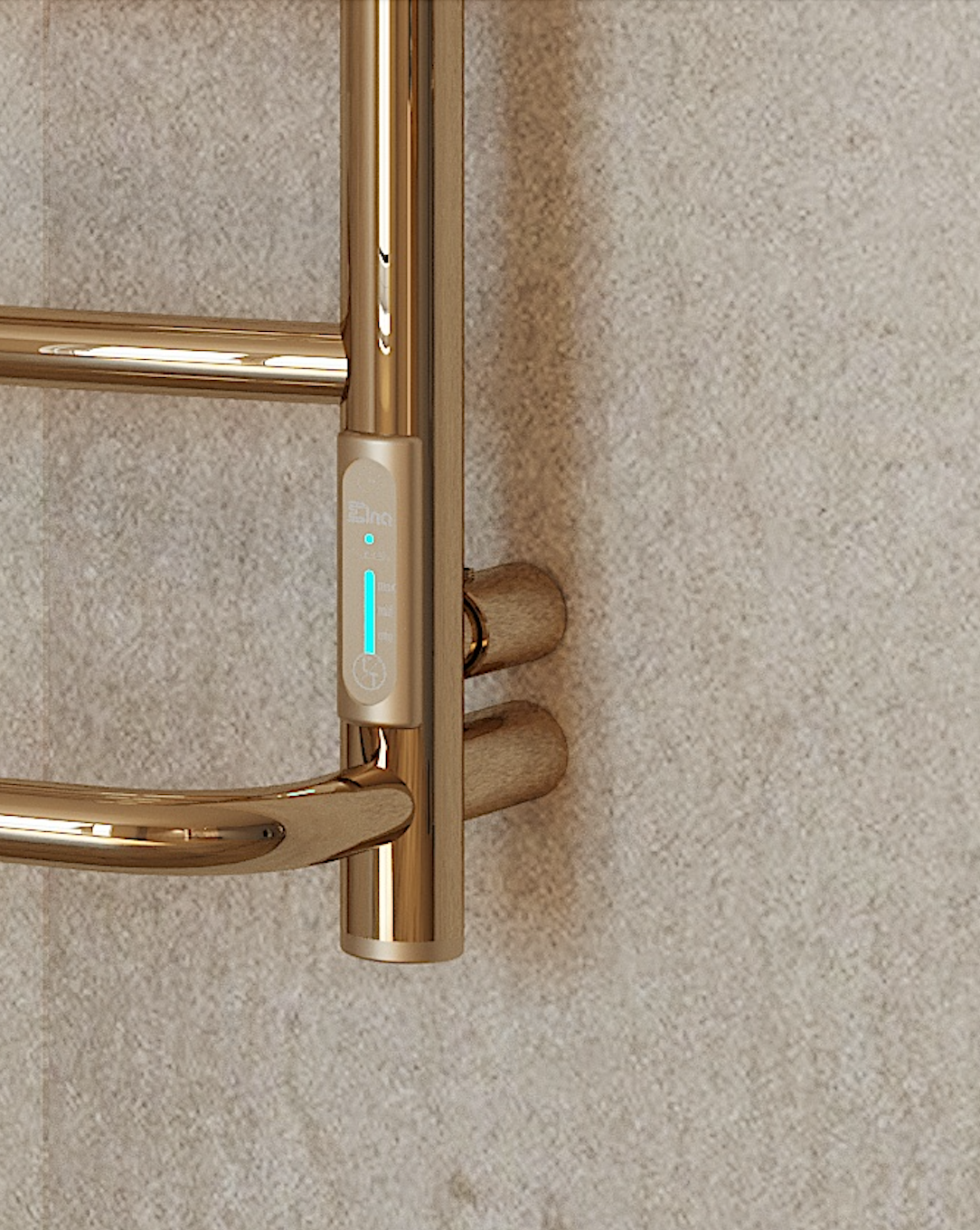 Cascade with Shelf elektrinis rankšluosčių džiovintuvas – stilingas ir funkcionalus sprendimas kiekvienai voniai. Šis elektrinis įrenginys pagamintas iš nerūdijančio plieno ir padengtas aukštos kokybės PVD titano nitrido danga, kuri sukuria ilgaamžį apsauginį sluoksnį. PVD technologija užtikrina ne tik atsparumą, bet ir puikų estetinį rezultatą. Veidrodinis paviršiaus blizgesys ir šiltas aksominis aukso atspalvis suteikia gaminiui prabangos pojūtį bei puikiai dera prie modernaus ar klasikinio vonios kambario interjero.