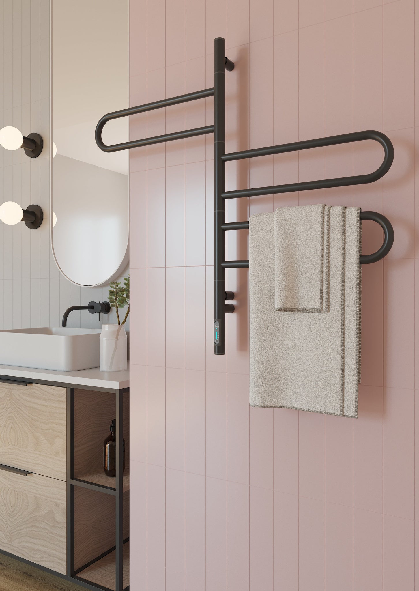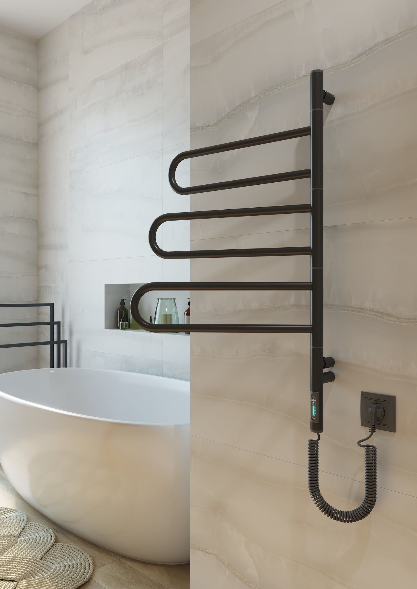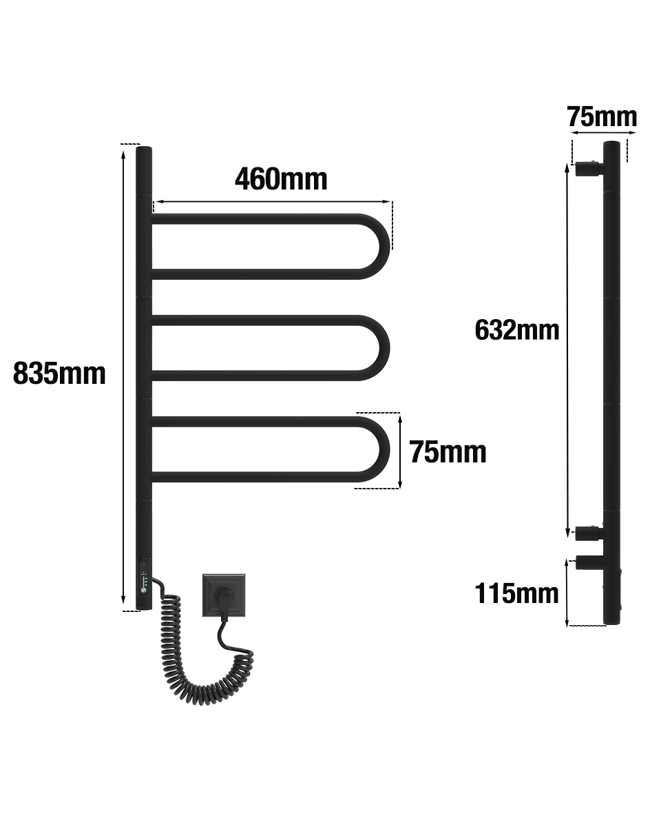 Tai visiškai elektrinis įrenginys, kuris neveikia vandens pagrindu ir nereikalauja prijungimo prie centrinės šildymo sistemos. Radiatorių galima įrengti bet kur, kur yra elektros lizdas – tiek kairėje, tiek dešinėje pusėje, pagal Jūsų poreikį. Viduje esantis sausasis šildymo laidas užtikrina saugų ir greitą veikimą – be jokių skysčių, tiesiog prijunkite prie elektros ir jis įkaista per kelias minutes. Tai ypač patogu, kai reikia greitai išdžiovinti rankšluosčius ar pašildyti juos jaukiam pojūčiui po dušo ar vonios.