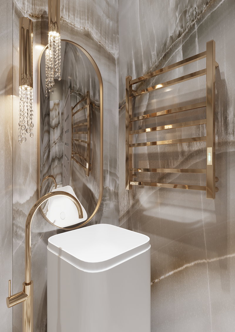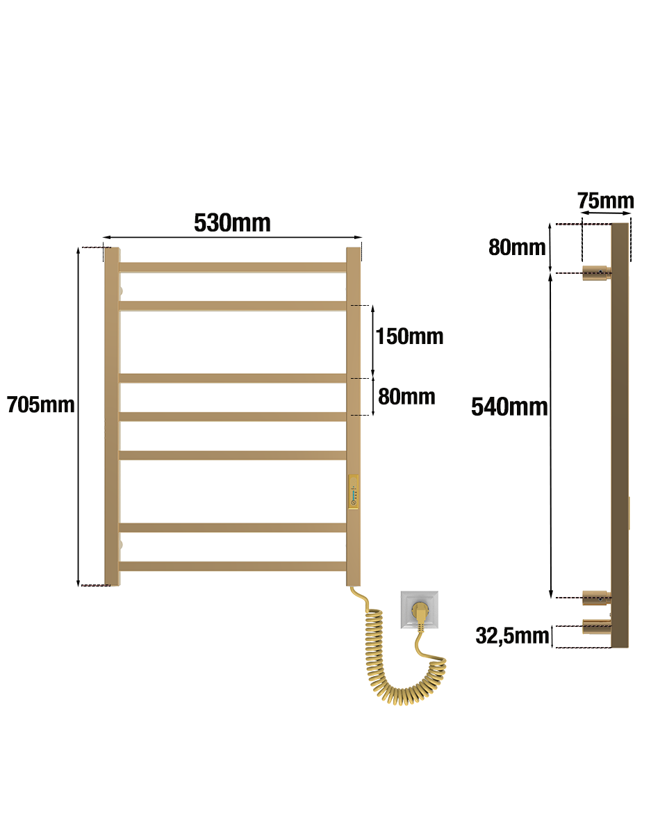 Ladder Elite elektrinis rankšluosčių džiovintuvas – stilingas ir funkcionalus sprendimas kiekvienai voniai. Šis elektrinis įrenginys pagamintas iš nerūdijančio plieno ir padengtas aukštos kokybės PVD titano nitrido danga, kuri sukuria ilgaamžį apsauginį sluoksnį. PVD technologija užtikrina ne tik atsparumą, bet ir puikų estetinį rezultatą. Veidrodinis paviršiaus blizgesys ir šiltas aksominis aukso atspalvis suteikia gaminiui prabangos pojūtį bei puikiai dera prie modernaus ar klasikinio vonios kambario interjero.