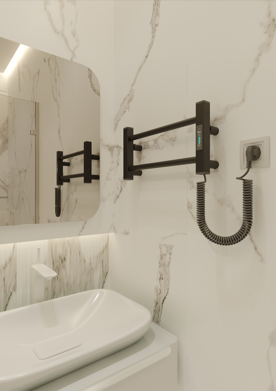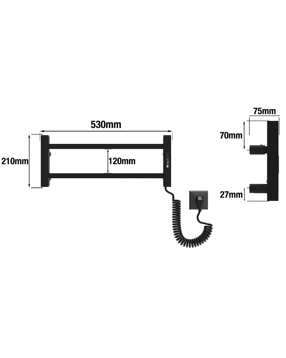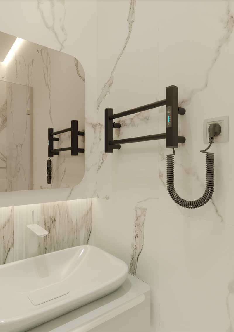 Tai visiškai elektrinis įrenginys, kuris neveikia vandens pagrindu ir nereikalauja prijungimo prie centrinės šildymo sistemos. Radiatorių galima įrengti bet kur, kur yra elektros lizdas – tiek kairėje, tiek dešinėje pusėje, pagal Jūsų poreikį. Viduje esantis sausasis šildymo laidas užtikrina saugų ir greitą veikimą – be jokių skysčių, tiesiog prijunkite prie elektros ir jis įkaista per kelias minutes. Tai ypač patogu, kai reikia greitai išdžiovinti rankšluosčius ar pašildyti juos jaukiam pojūčiui po dušo ar vonios. Galimas ir paslėptas montavimas – be matomo maitinimo laido, idealiai tinkantis moderniam, minimalistiniam interjerui.