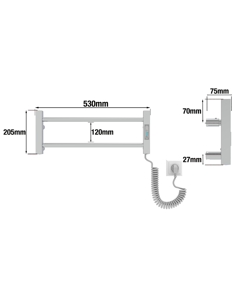 Tai visiškai elektrinis įrenginys, kuris neveikia vandens pagrindu ir nereikalauja prijungimo prie centrinės šildymo sistemos. Radiatorių galima įrengti bet kur, kur yra elektros lizdas – tiek kairėje, tiek dešinėje pusėje, pagal Jūsų poreikį. Viduje esantis sausasis šildymo laidas užtikrina saugų ir greitą veikimą – be jokių skysčių, tiesiog prijunkite prie elektros ir jis įkaista per kelias minutes. Tai ypač patogu, kai reikia greitai išdžiovinti rankšluosčius ar pašildyti juos jaukiam pojūčiui po dušo ar vonios.