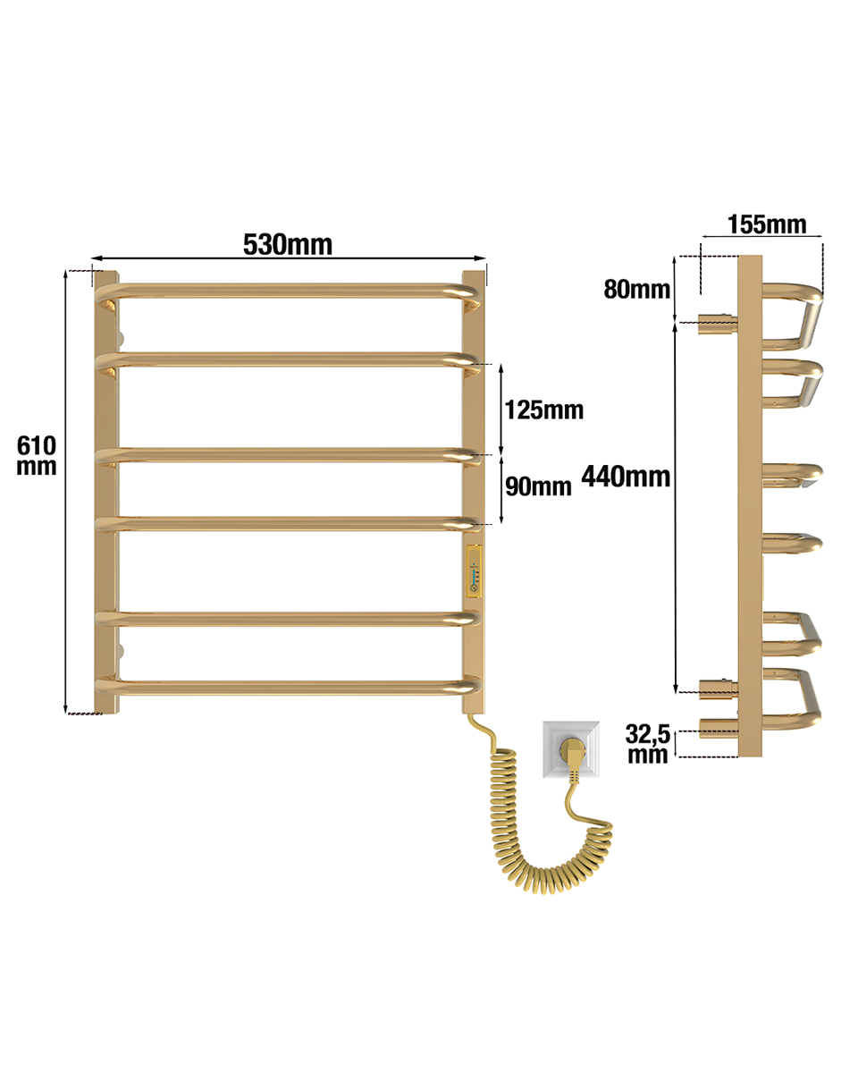 Standard Lux elektrinis rankšluosčių džiovintuvas – stilingas ir funkcionalus sprendimas kiekvienai voniai. Šis elektrinis įrenginys pagamintas iš nerūdijančio plieno ir padengtas aukštos kokybės PVD titano nitrido danga, kuri sukuria ilgaamžį apsauginį sluoksnį. PVD technologija užtikrina ne tik atsparumą, bet ir puikų estetinį rezultatą. Veidrodinis paviršiaus blizgesys ir šiltas aksominis aukso atspalvis suteikia gaminiui prabangos pojūtį bei puikiai dera prie modernaus ar klasikinio vonios kambario interjero.